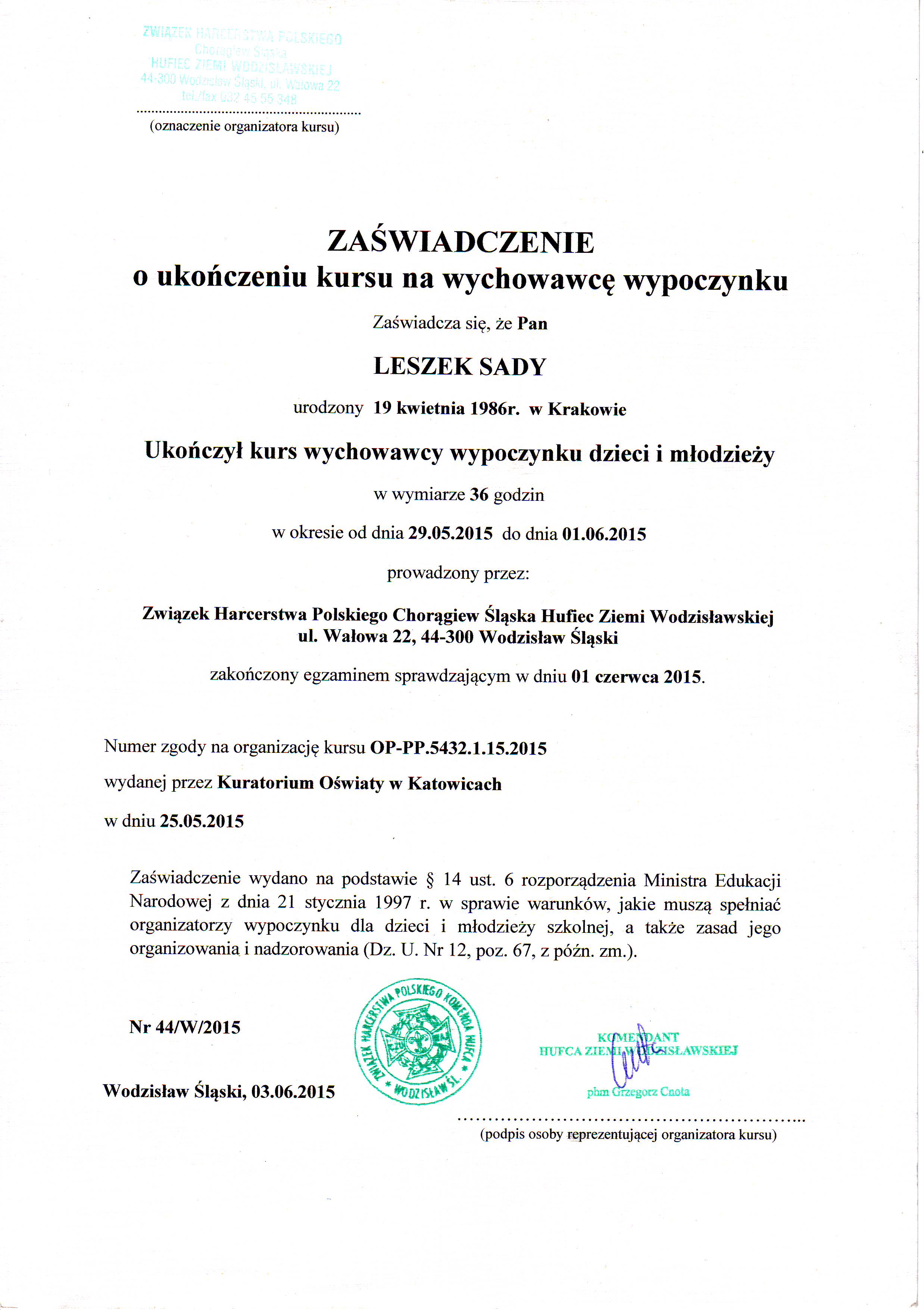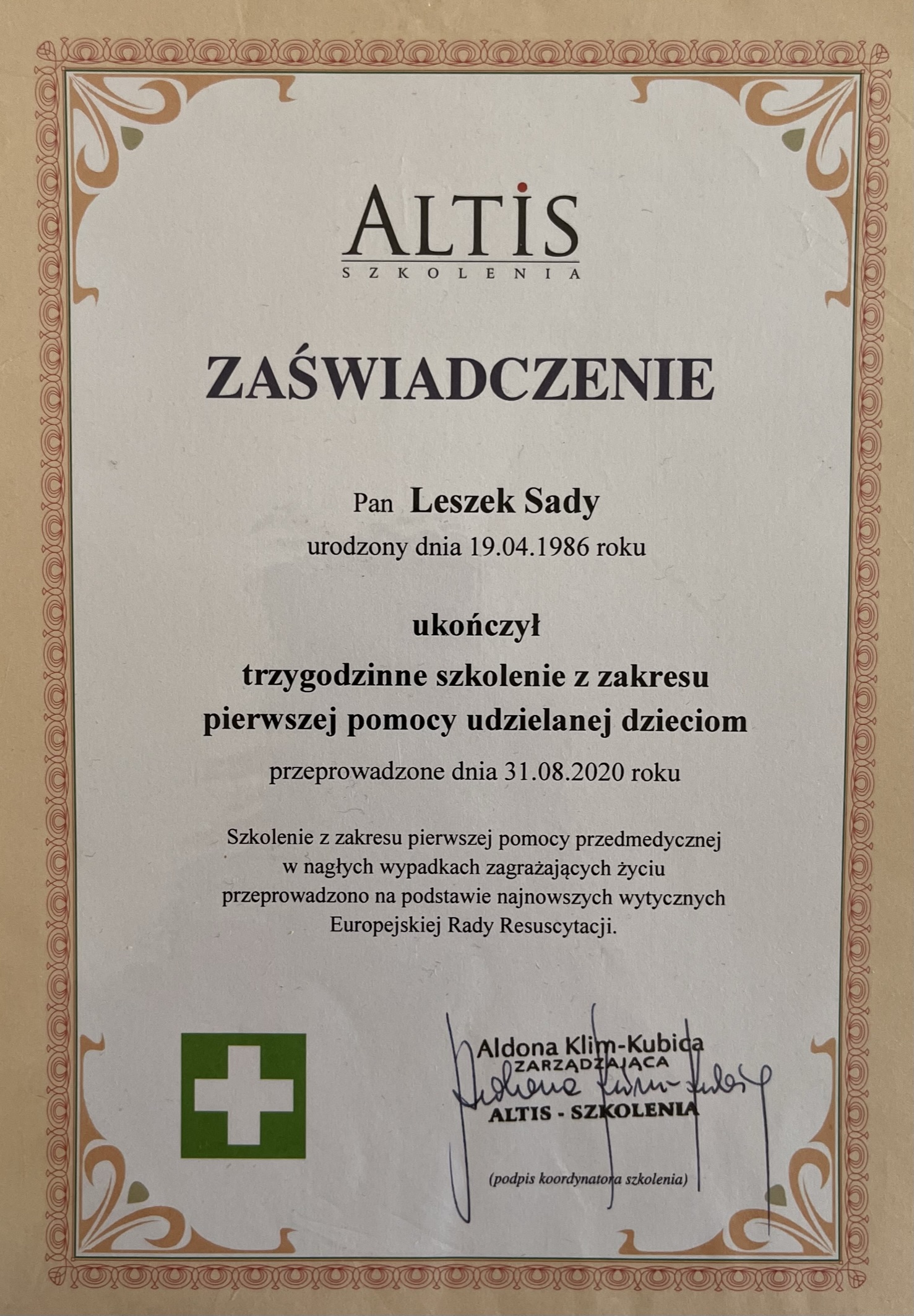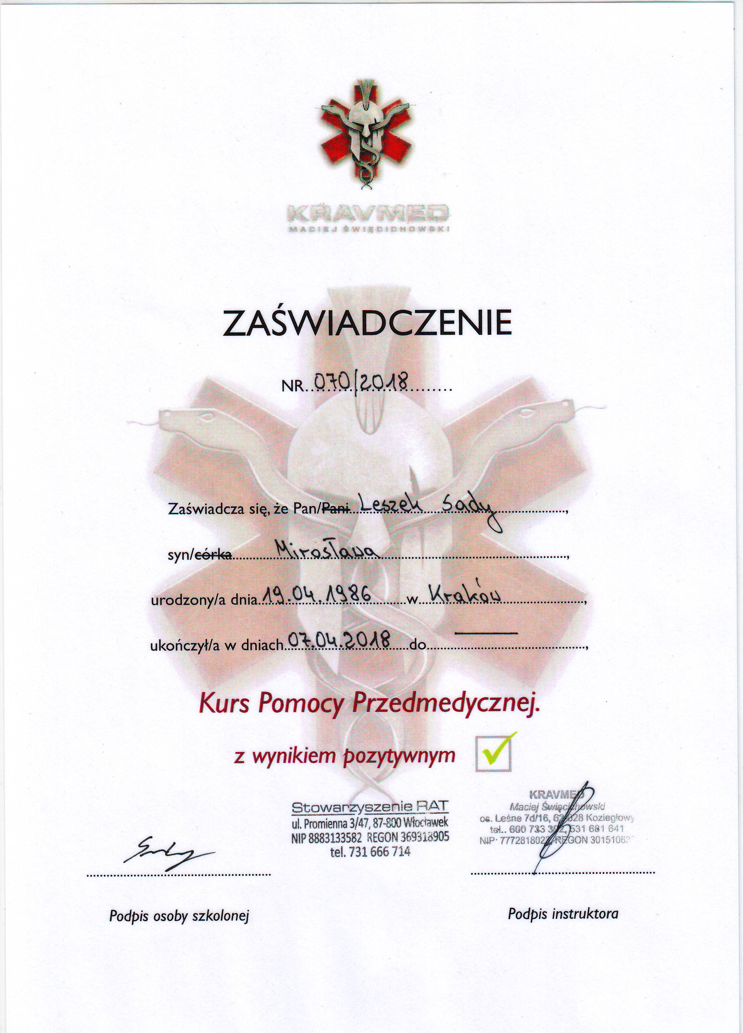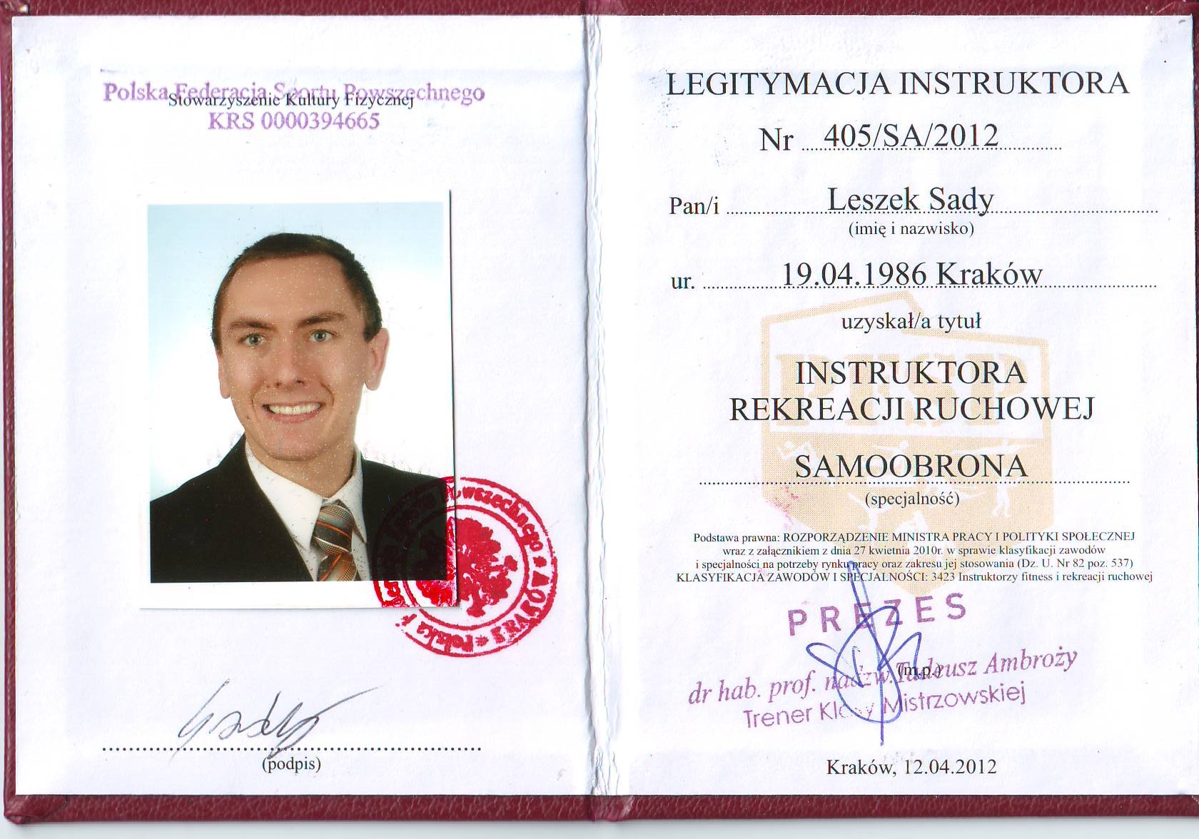 - Instruktor rekreacji ruchowej ze specjalność samoobrona (uprawnienia polskie)
