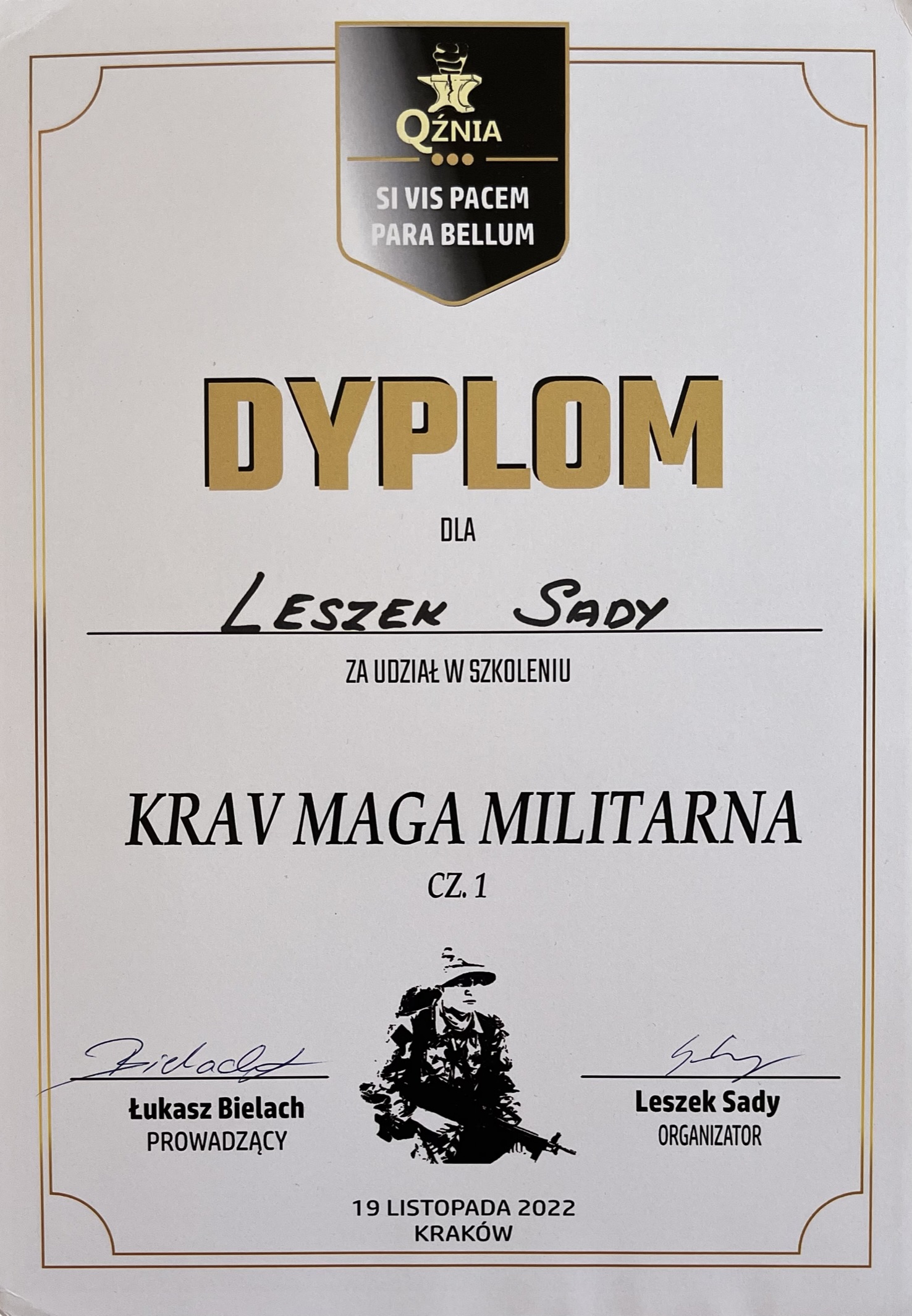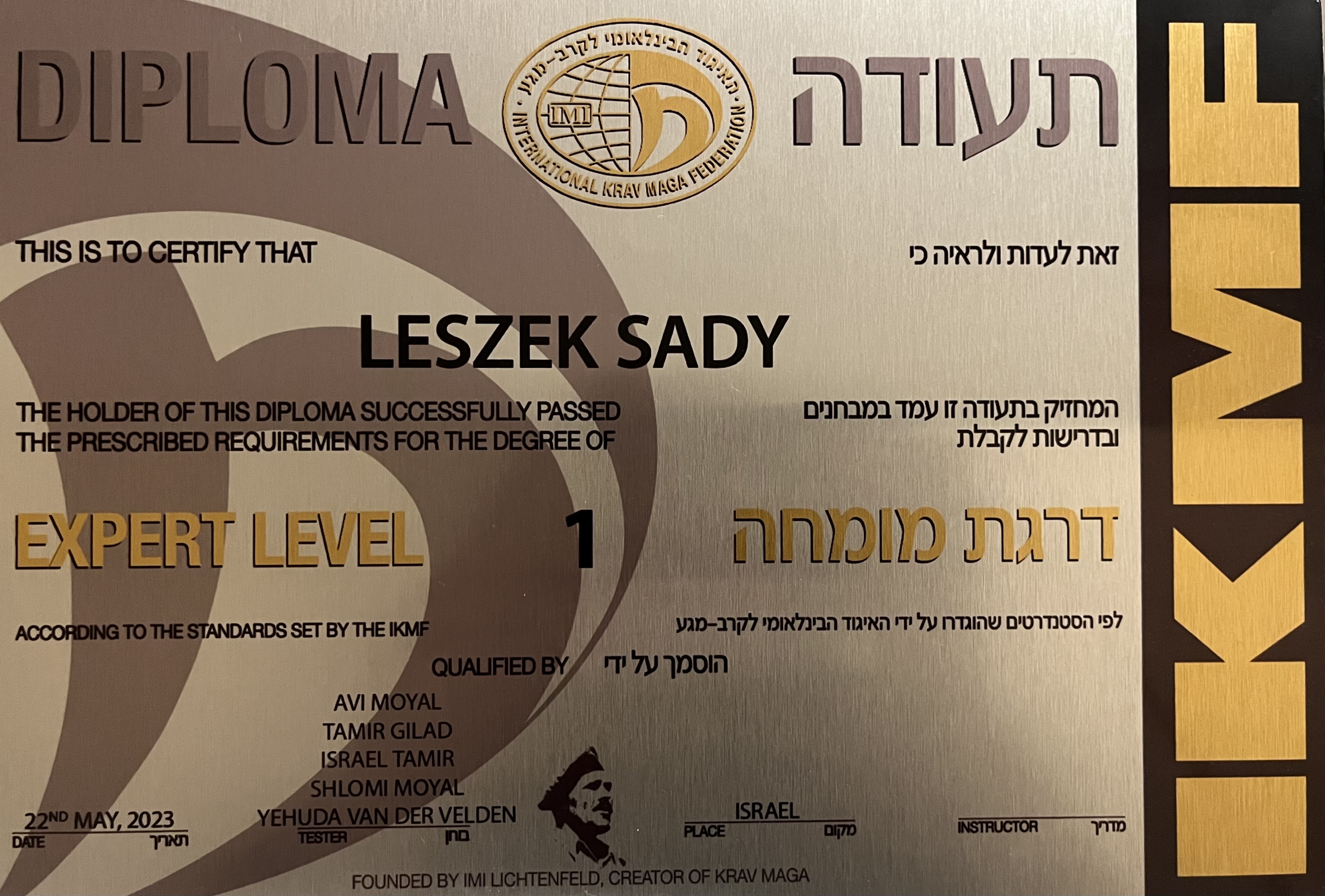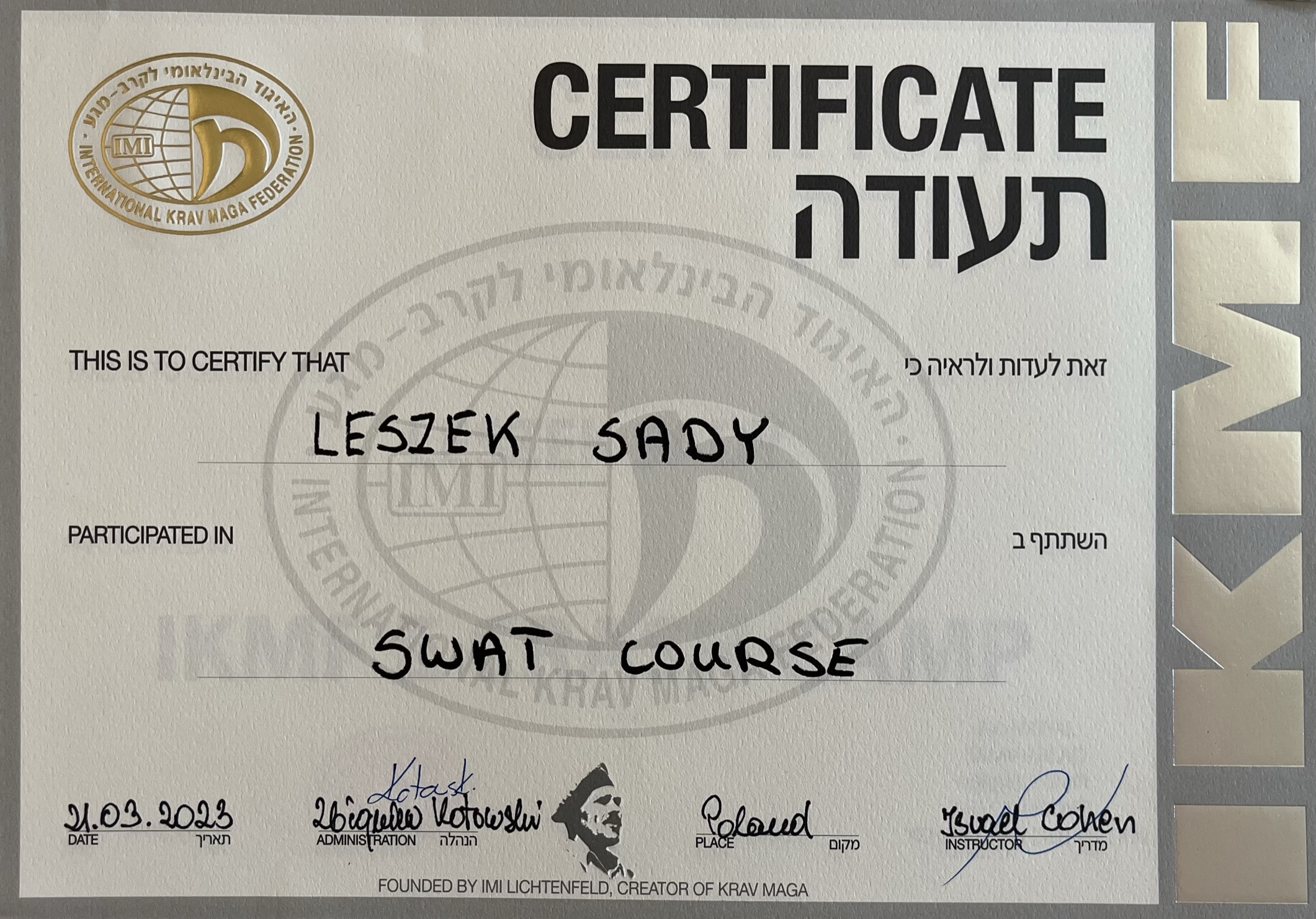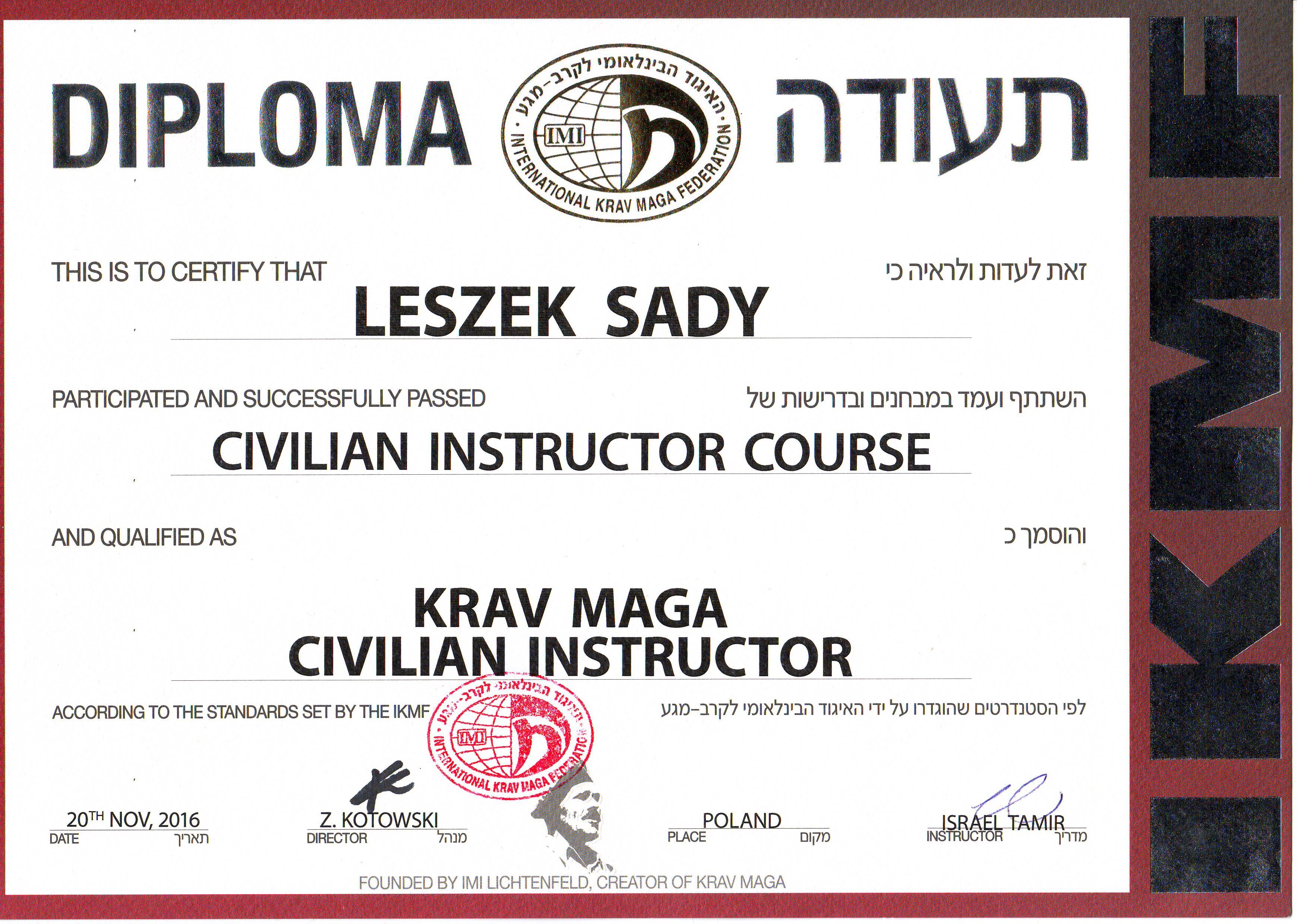 - Cywilny instruktor krav maga (uprawnienia międzynarodowe)
