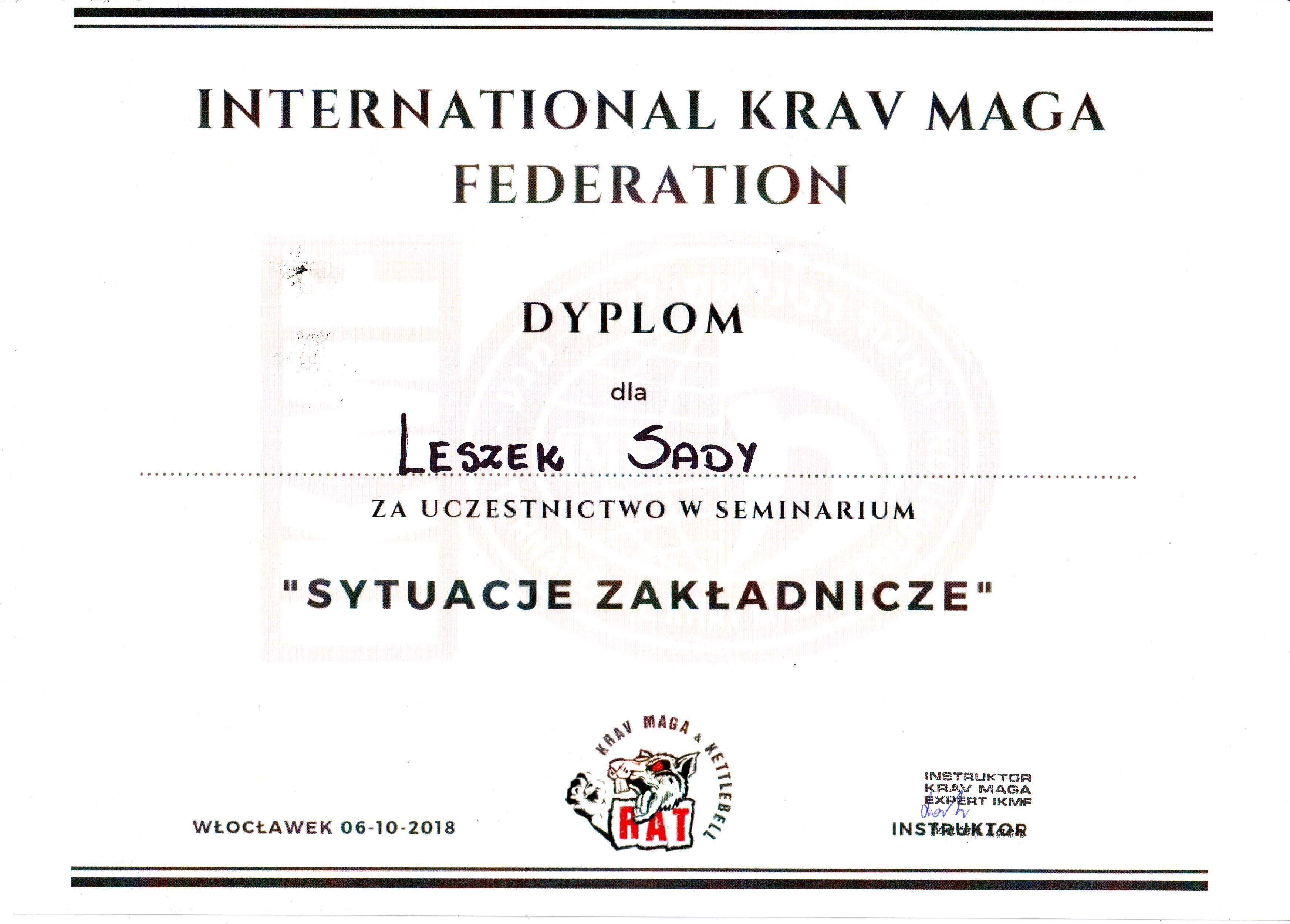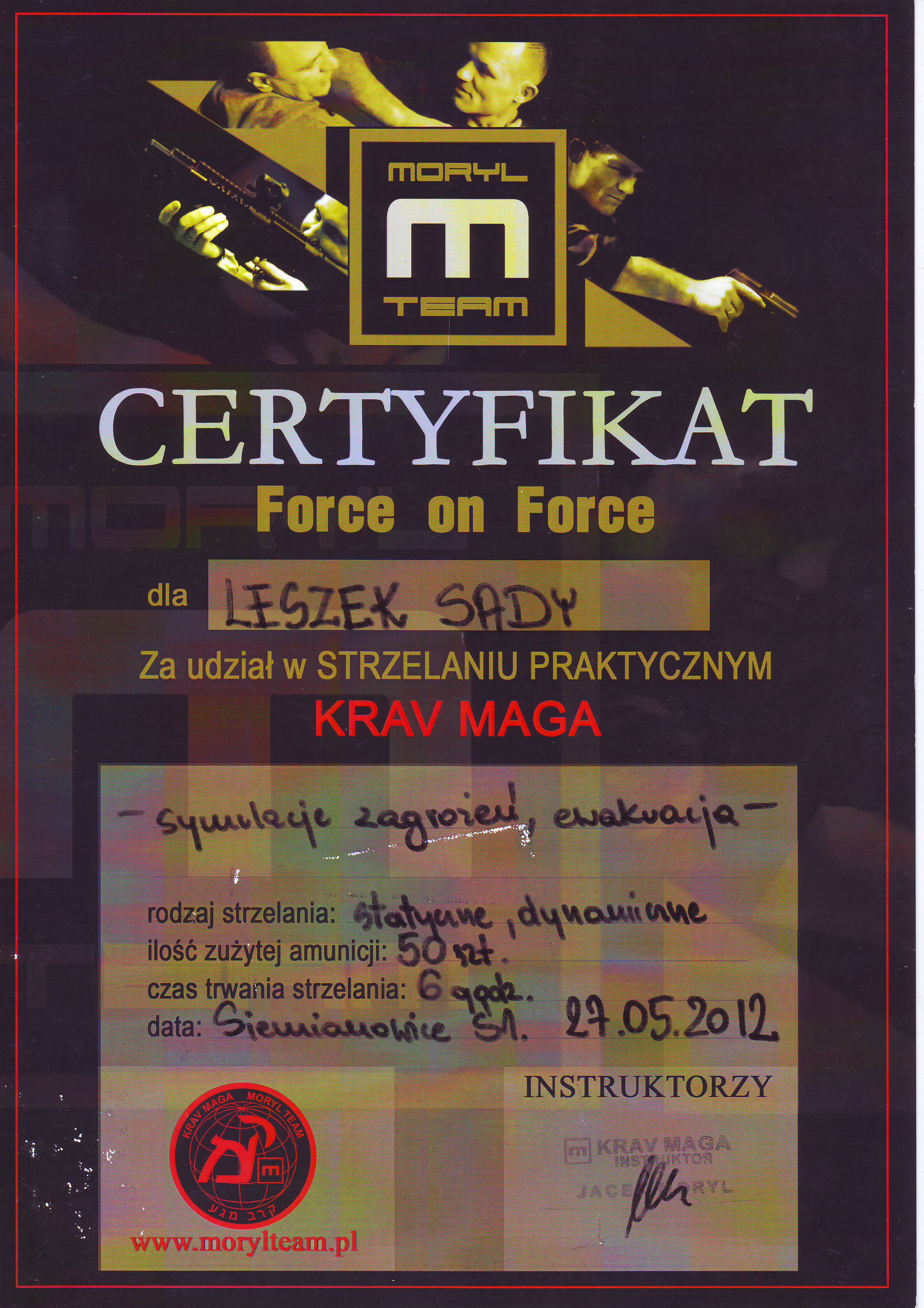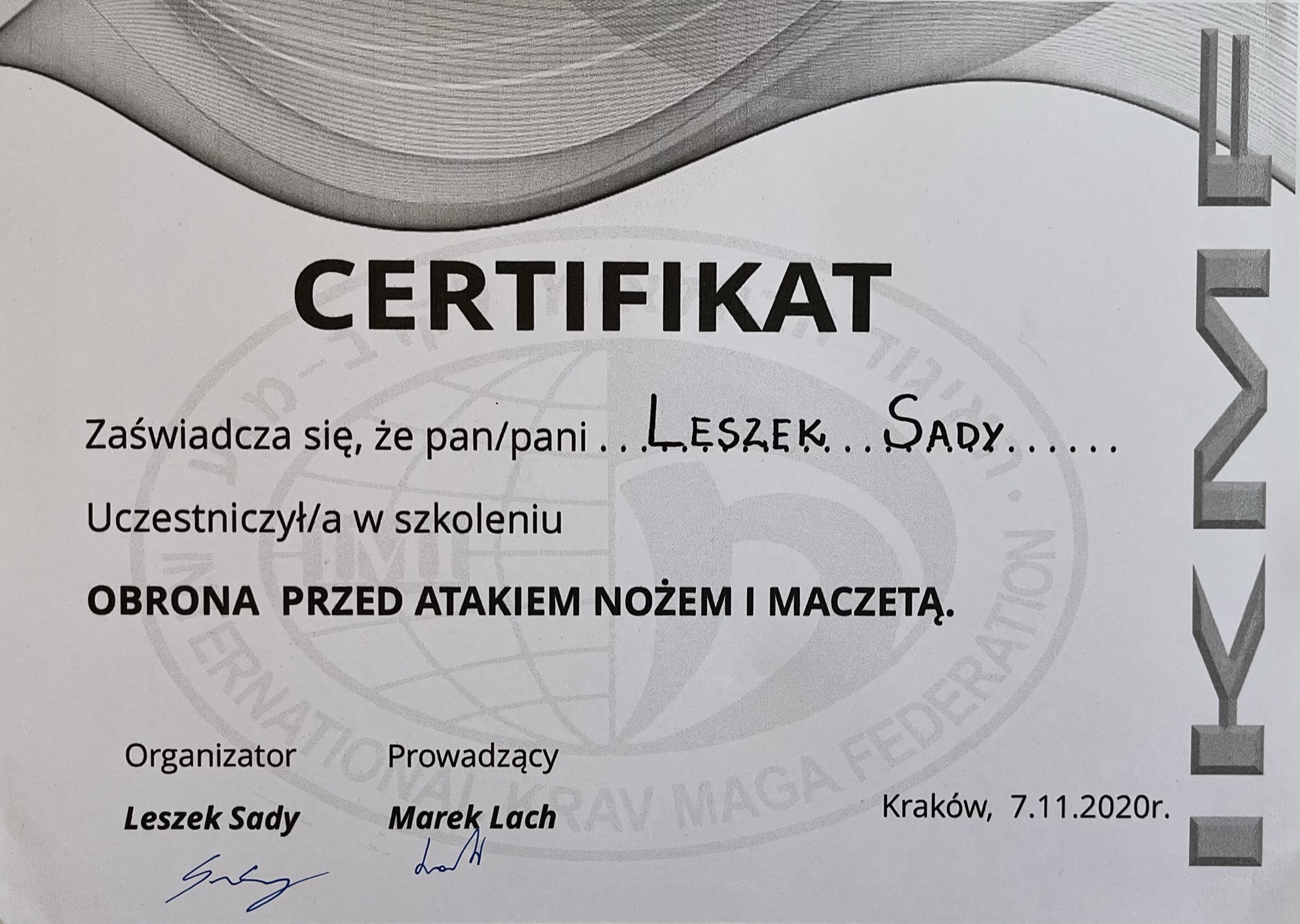 - Cywilny instruktor krav maga (uprawnienia międzynarodowe)