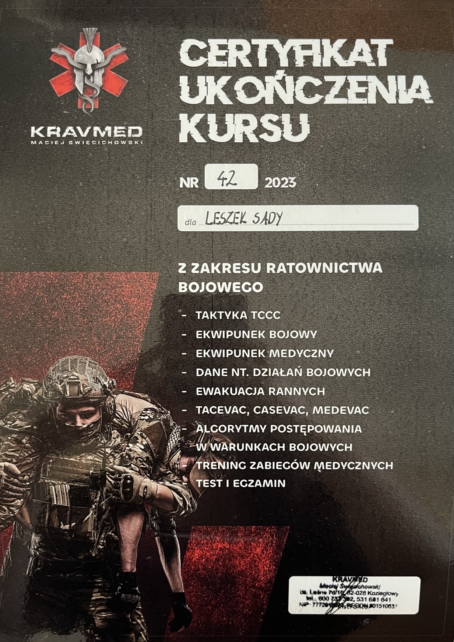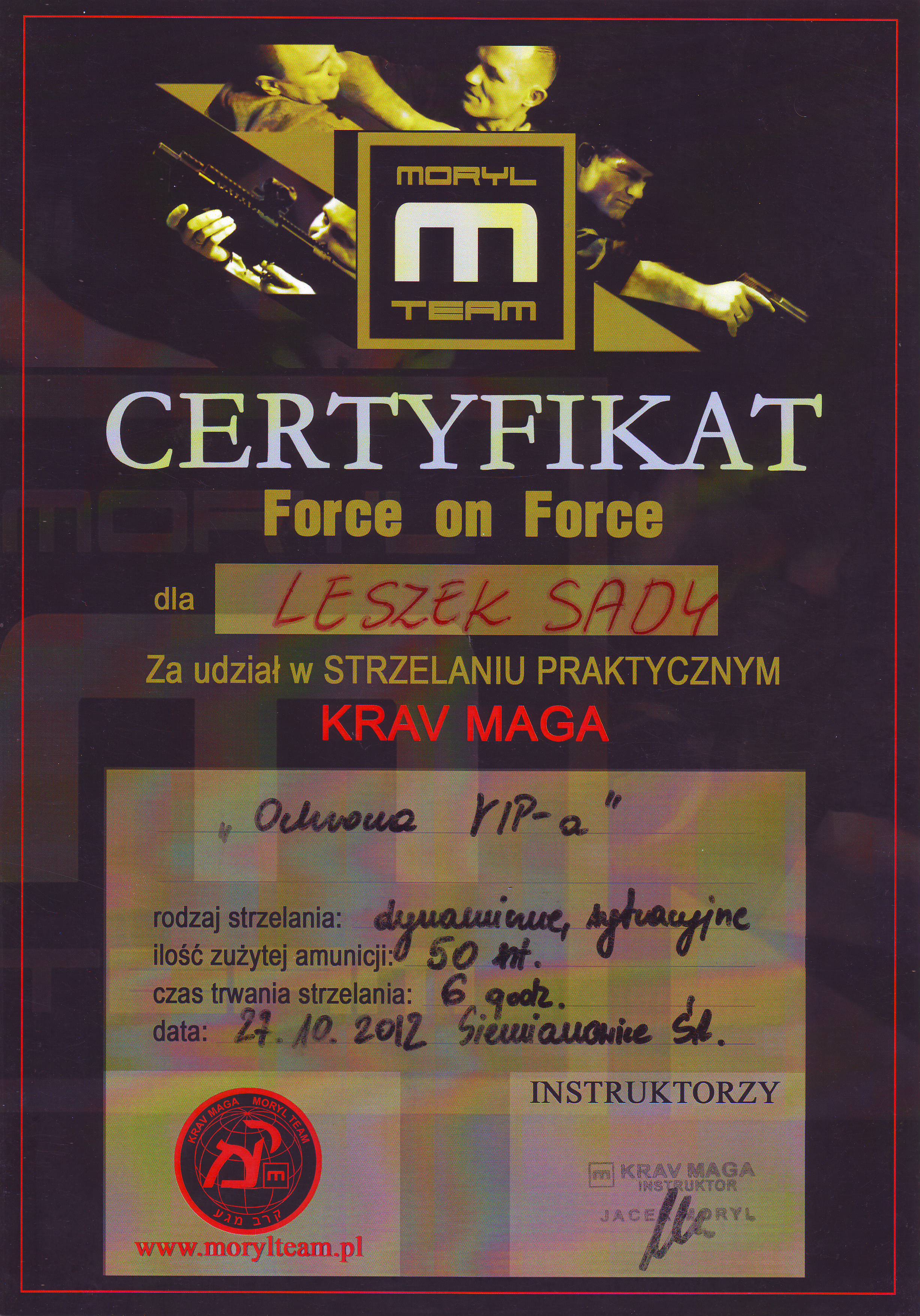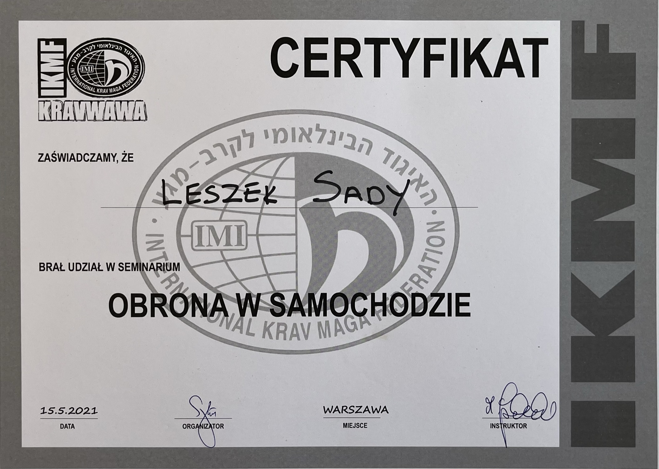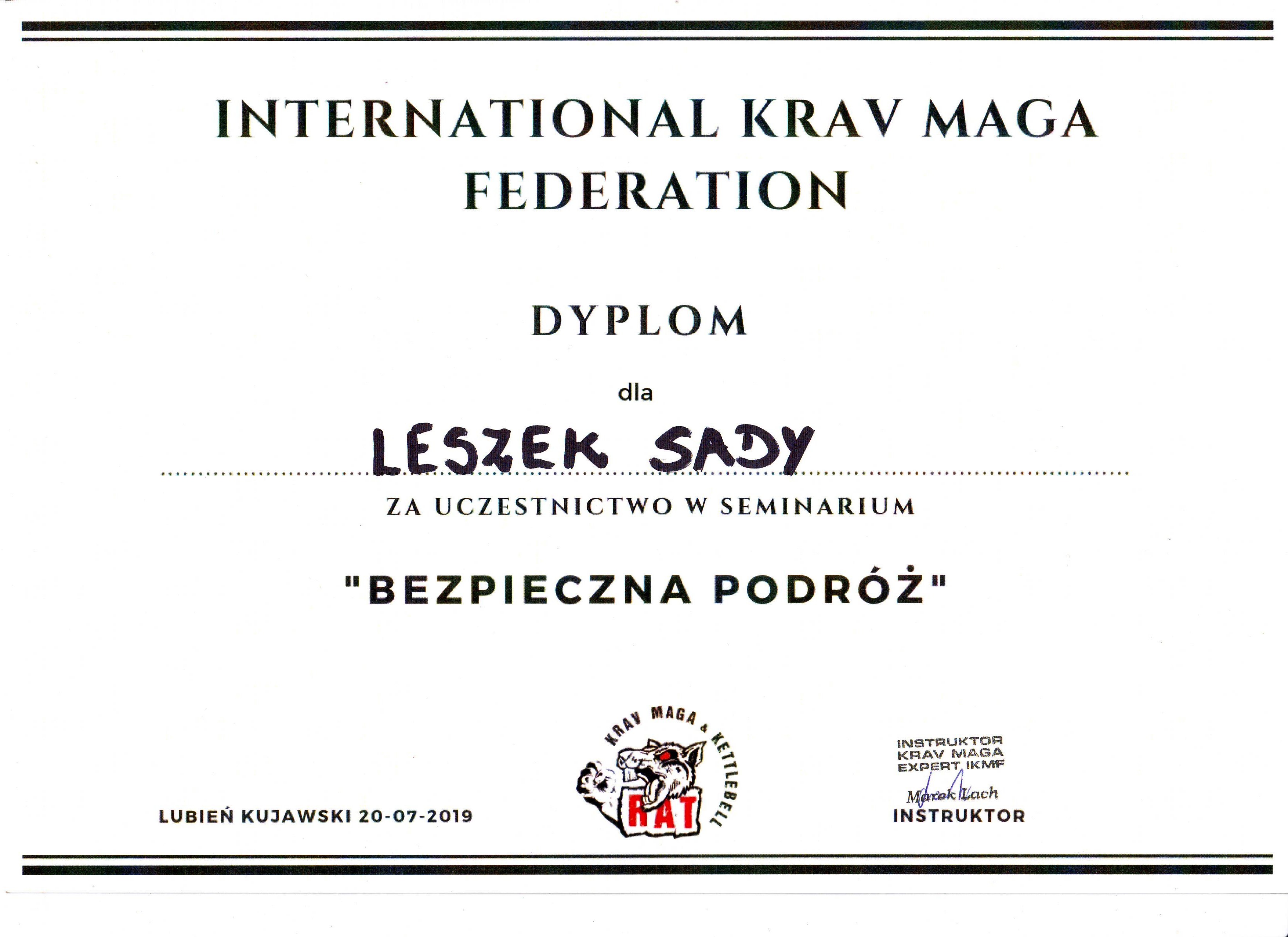 - Cywilny instruktor krav maga (uprawnienia międzynarodowe)