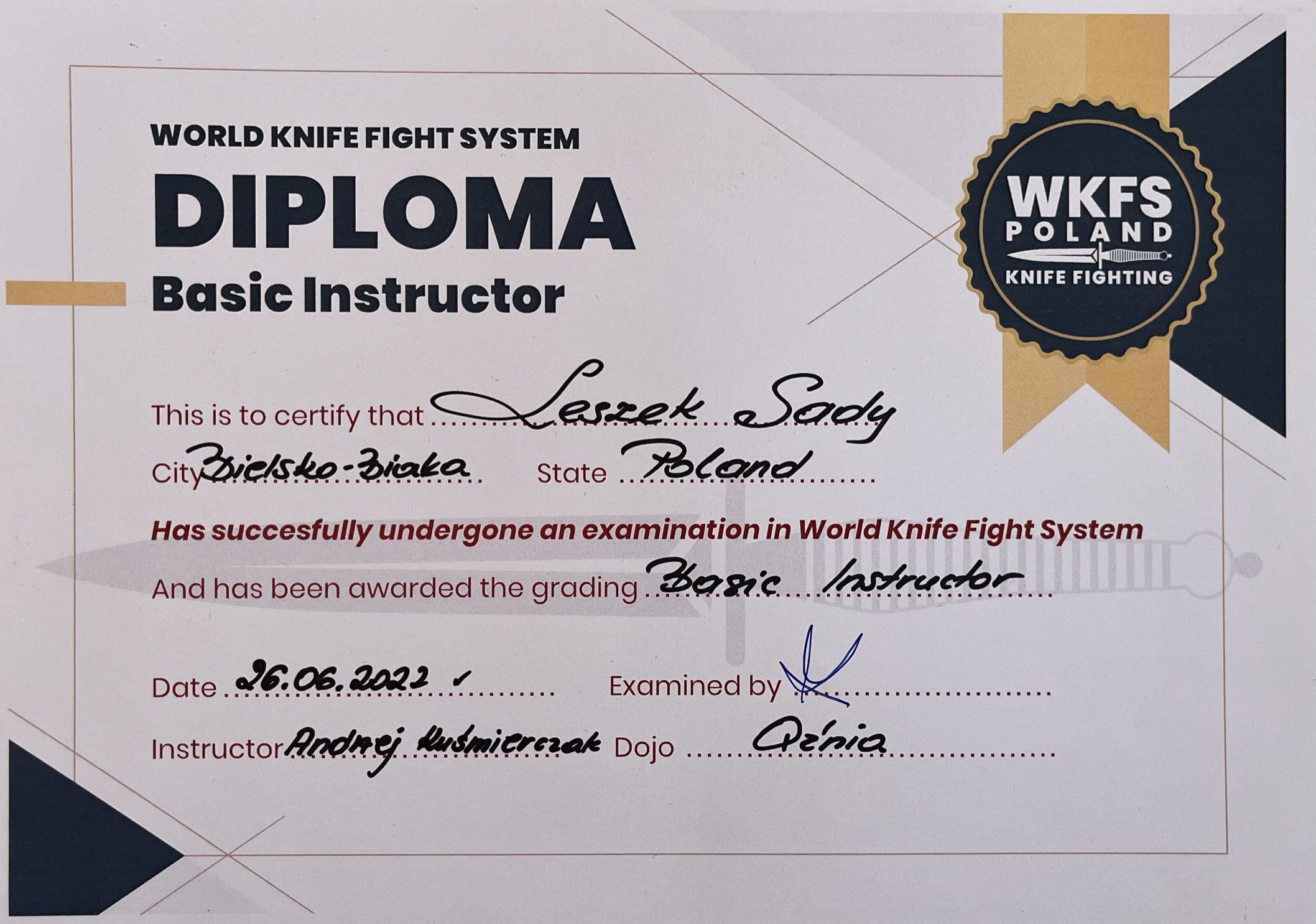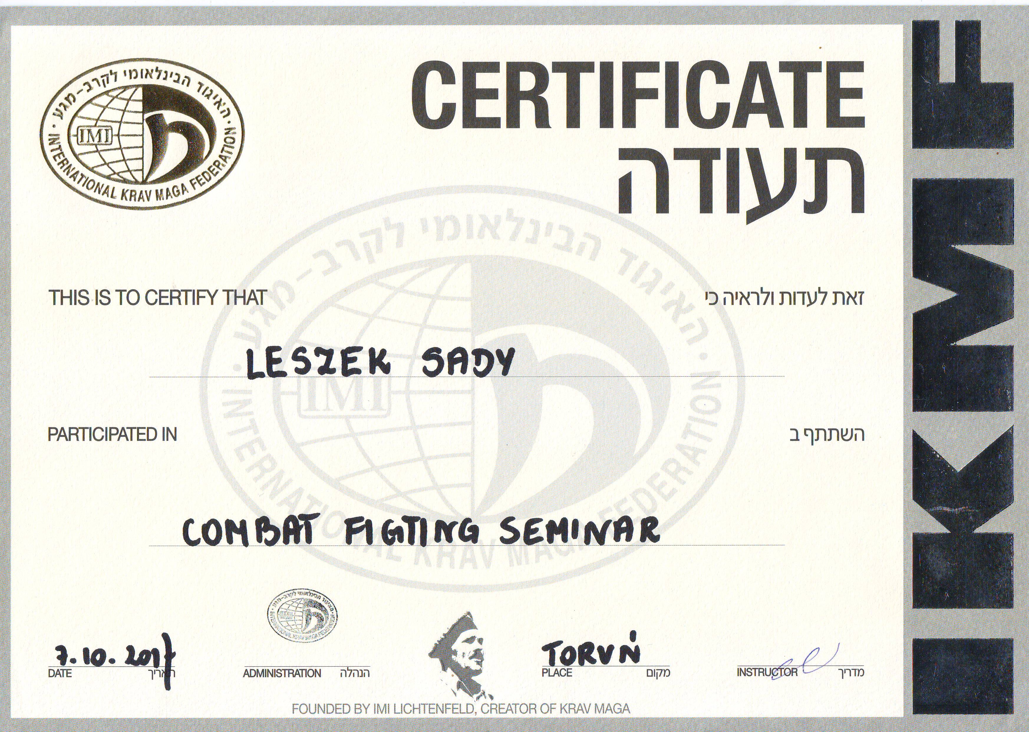 - Combat Fighter instruktor krav maga (uprawnienia międzynarodowe)