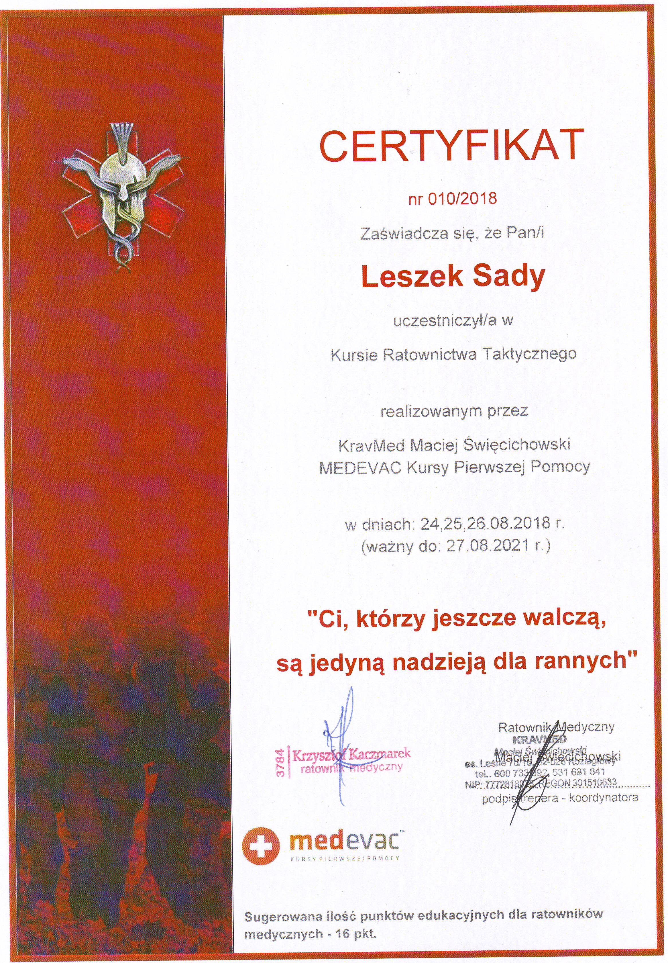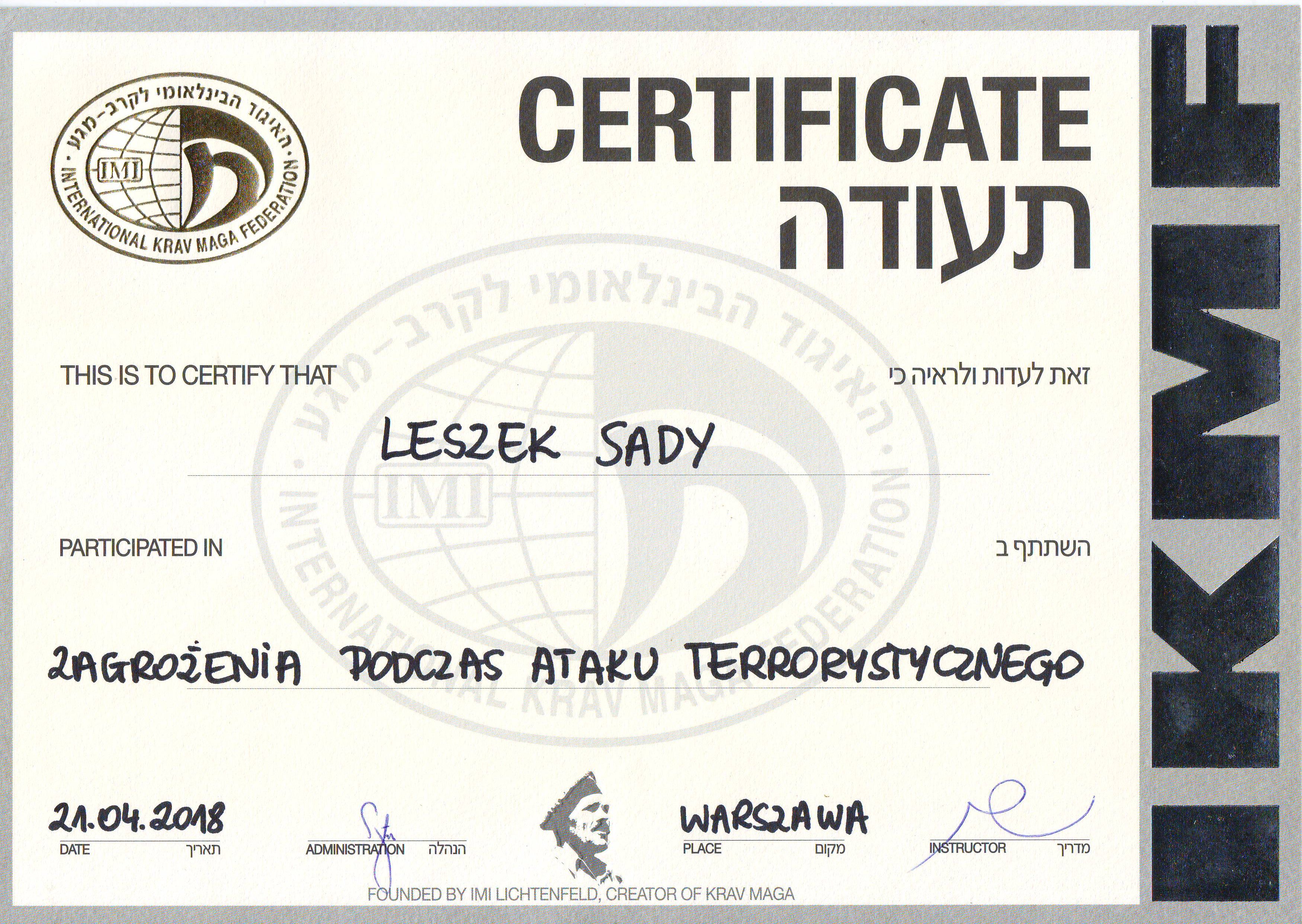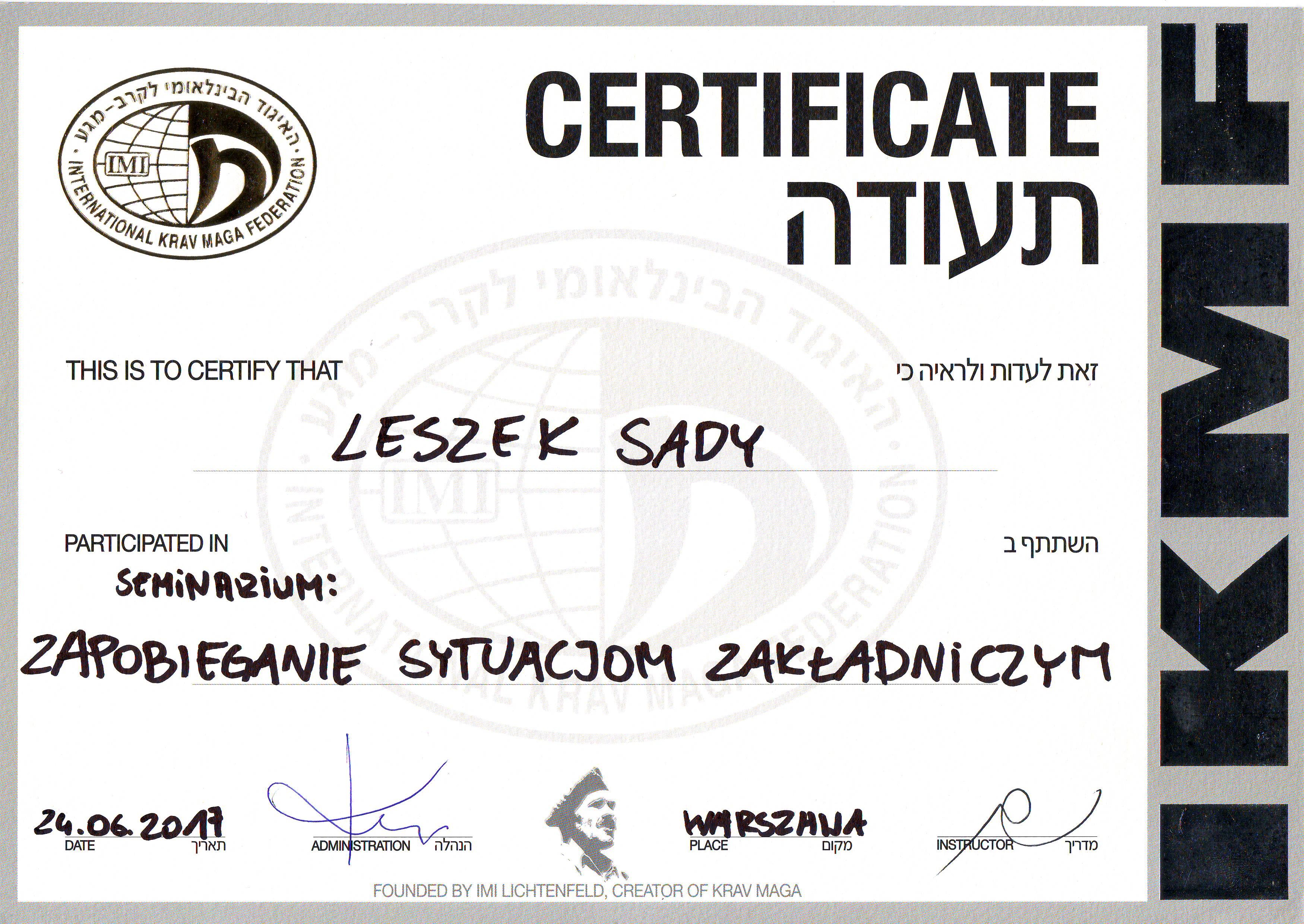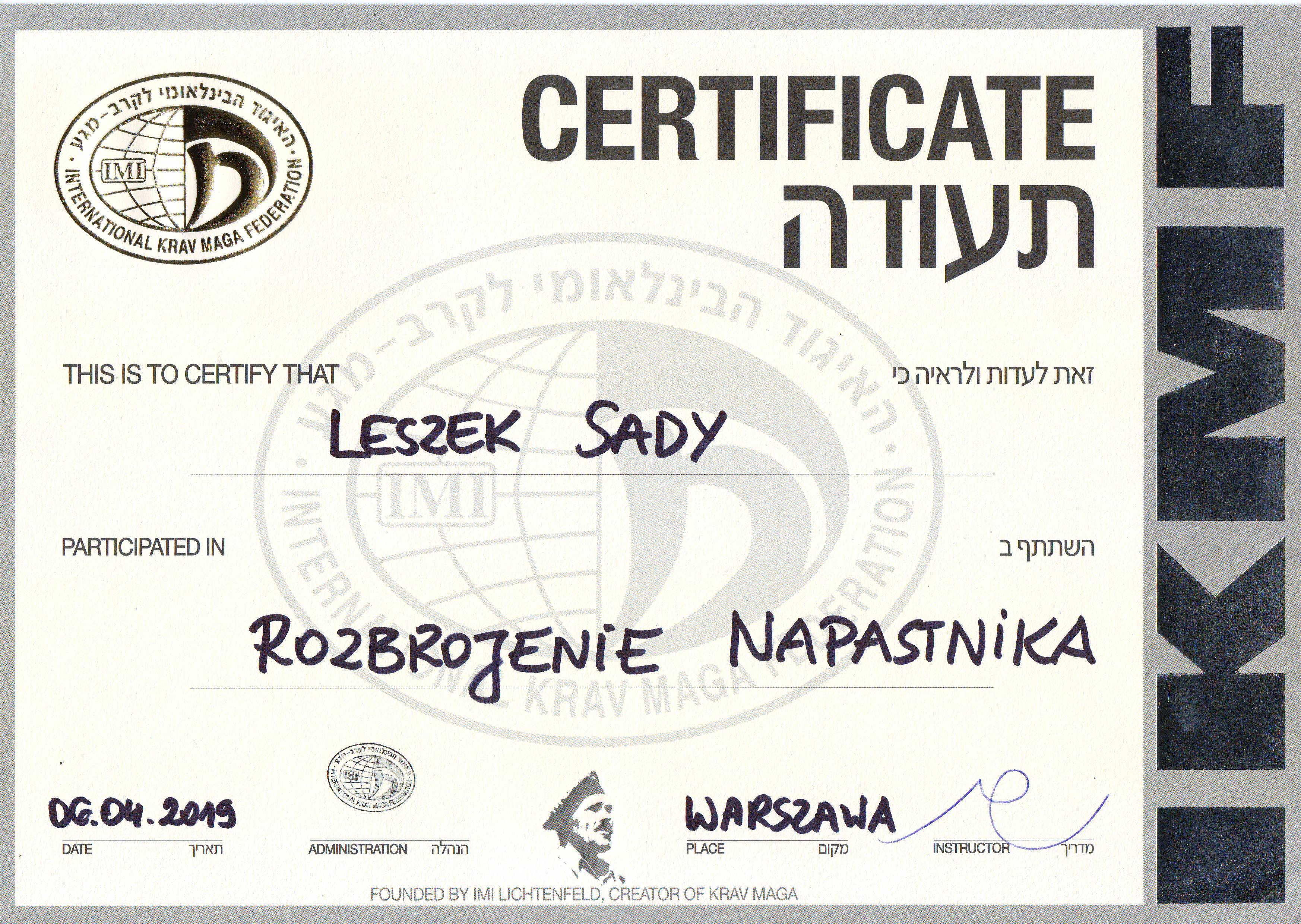 Leszek Sady zaczął trenować krav maga w 2007 roku. Dołączył do największej i najstarszej federacji krav maga na świecie (IKMF) gdzie z czasem zrobił kurs instruktorski i jest jej członkiem do dziś.